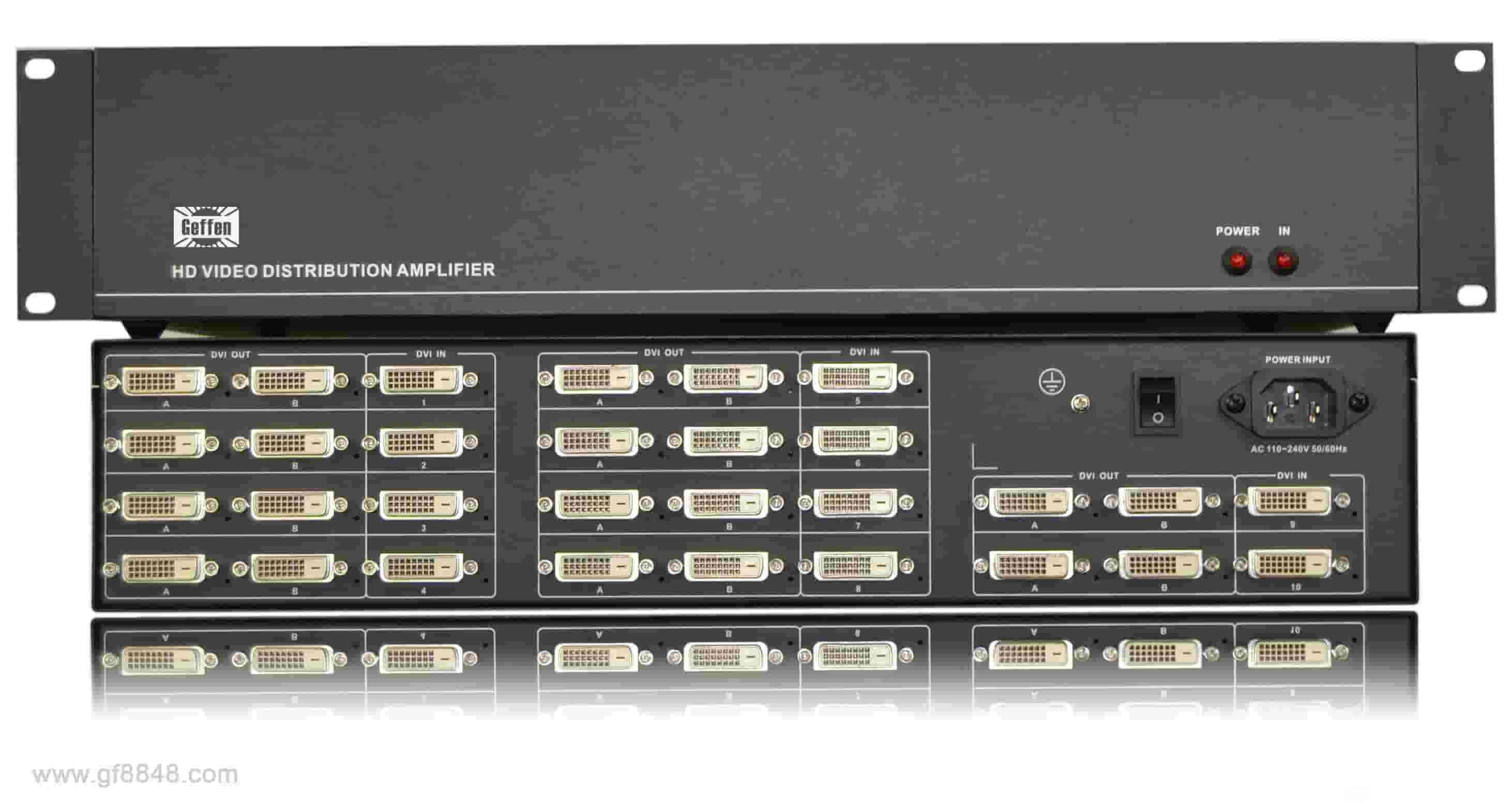 支持1路DVI视频信号输入,8路DVI视频信号输出。