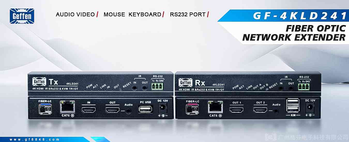 在指挥调度中心、广播电视演播室、高端会议中心等专业AV场景中,信号源与显示设备往往存在远距离部署需求,传统铜缆传输易受电磁干扰、信号衰减等问题困扰,难以满足4K超高清信号的稳定传输要求。格芬GEFFEN光纤传输延长器凭借传输距离远、抗干扰性强、信号无损等核心优势,成为解决长距信号传输难题的关键设备。作为深耕AV领域多年的品牌,格芬科技依托自主研发生产体系,从核心技术到生产工艺实现全链路把控,更可提供灵活的OEM/ODM定制服务,精准适配不同企业与复杂场景的严苛需求。