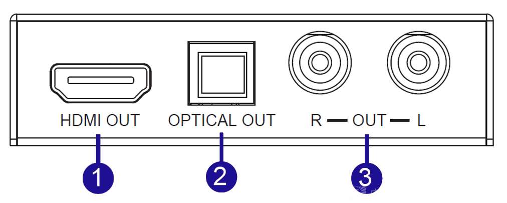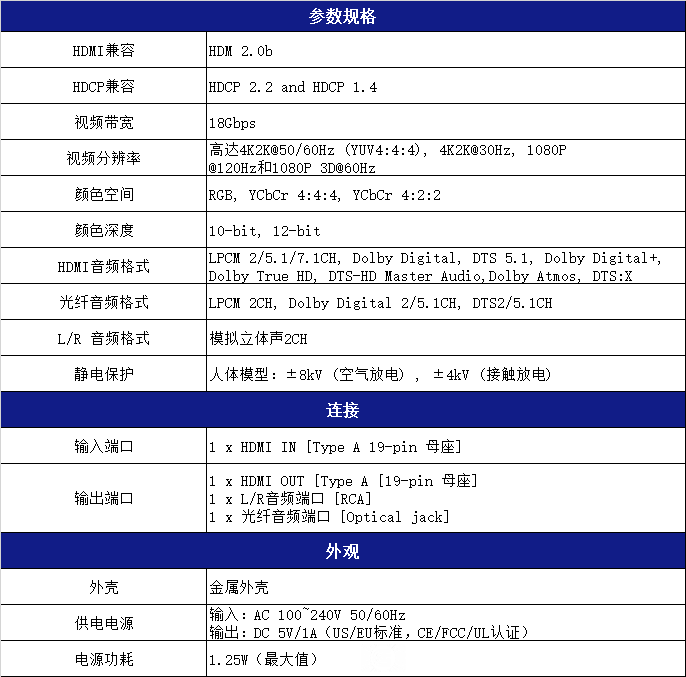 ☆ 支持剥离HDMI源设备的音频给多通道光纤(SPDIF)和L/R模拟音频输出