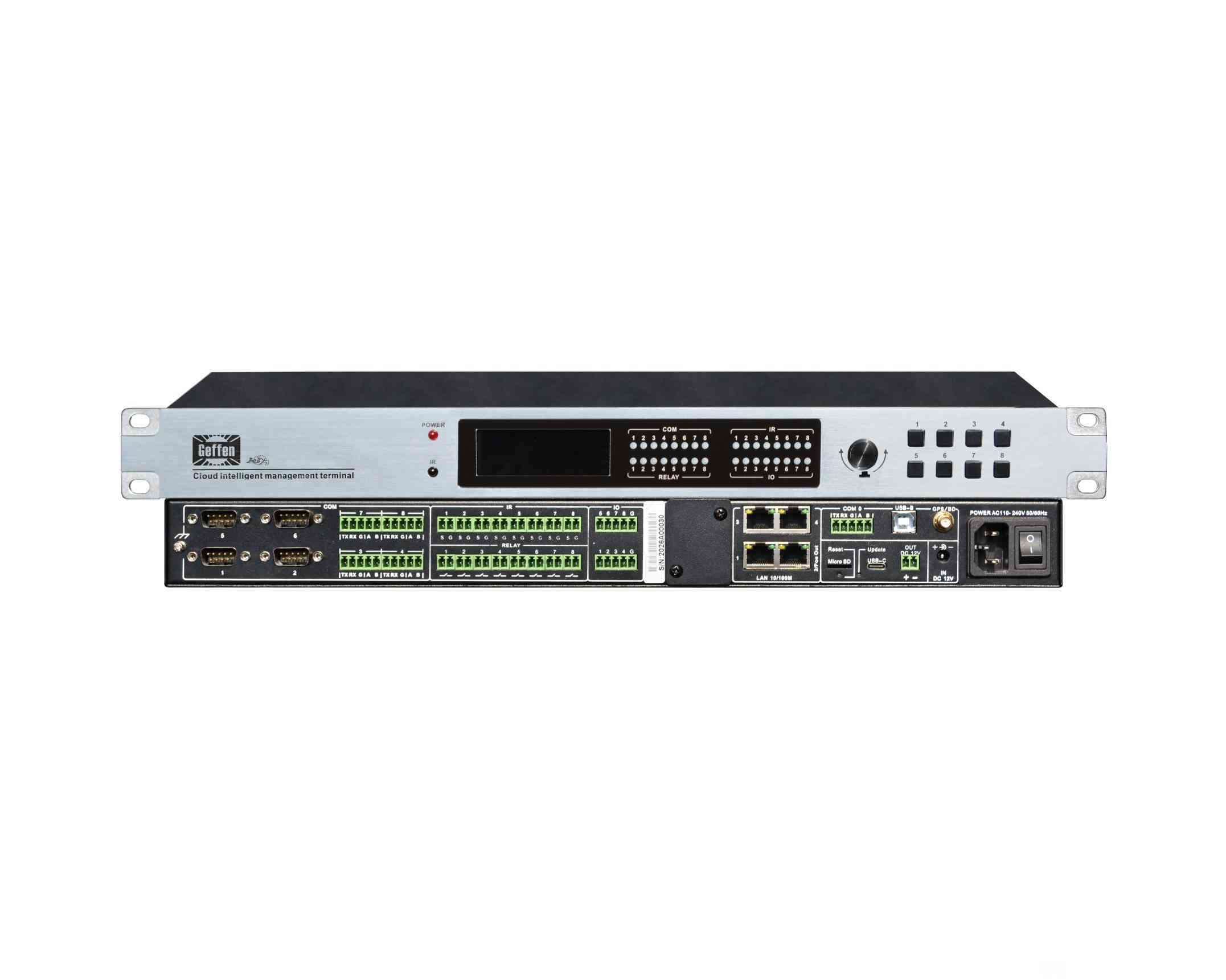 全类型丰富接口配置:配备9路可切换RS232/RS485的串口(4路DB9公座+5路5P凤凰座)、8路触点、8路数字I/O、8路红外IR,可直接对接各类串口设备、红外设备、传感设备等物联网终端;4路10/100base-T(X)自适应以太网接口加持,其中第2路网口支持IEEE 802.3af标准POE供电(最大15.4W),兼顾网络连接与外设供电,减少外部供电设备部署,简化编程时的设备连接逻辑。
