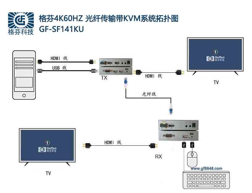 GEFFEN4K60HZ光纤传输器采用单纤双向光纤传输,可将HDMI高清信号延长传输最远20公里,它具有红外信号、RS232串口、鼠标键盘通信接口。采用单纤双向LC接口传输光纤线成本低,信号传输更稳定。可用于安防监控,楼宇间高清信号,广场大屏等远距离的HDMI信号传输领域。
