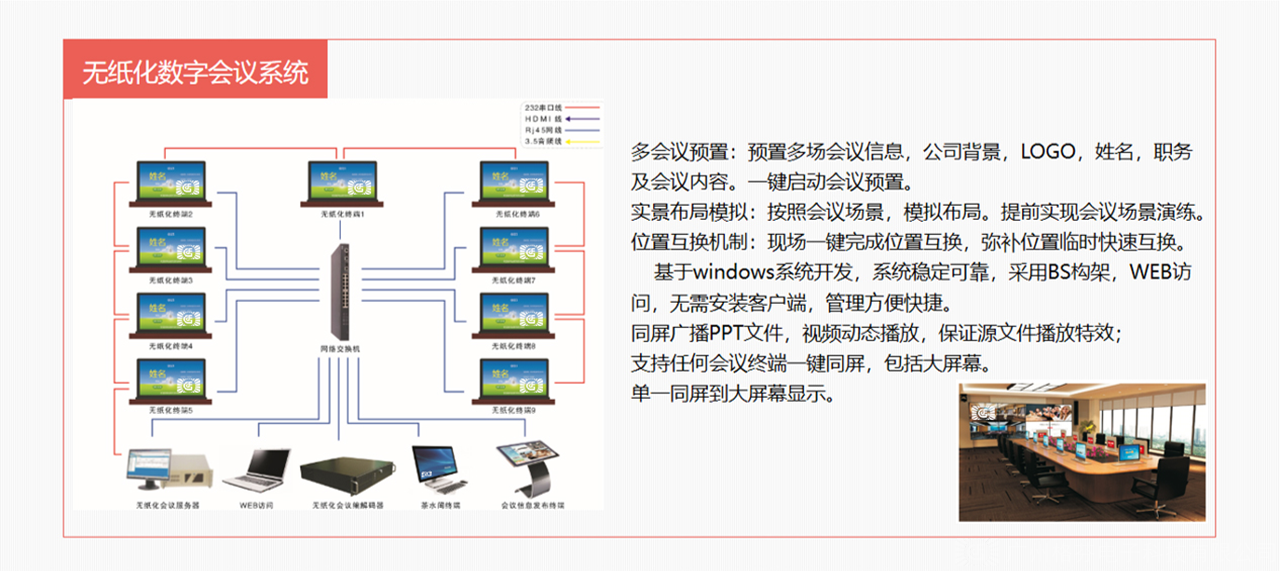 ★支持会议室集中管理:集中查询多个会议室的工作状态,和一键关闭会议室设备。