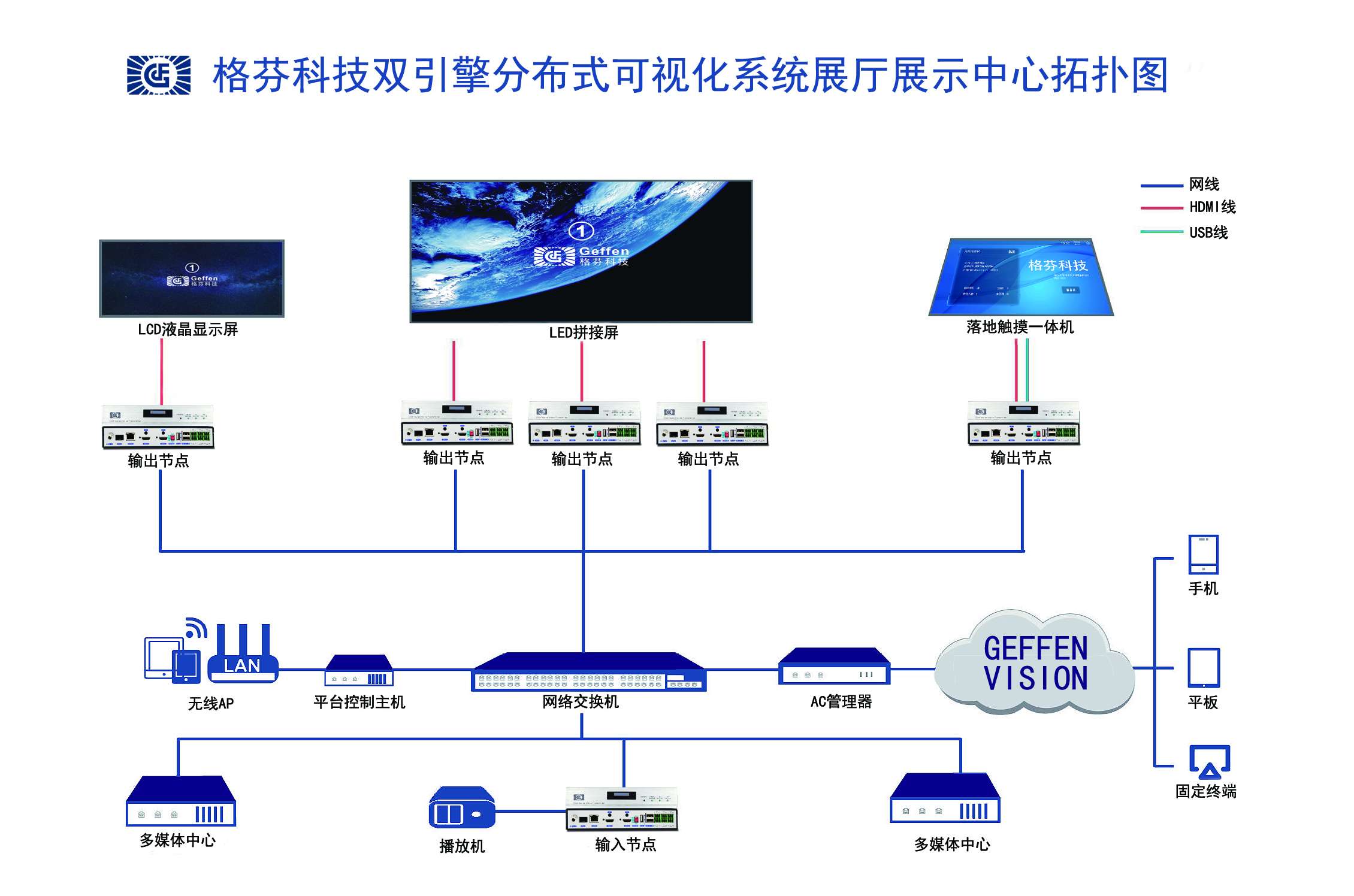GEFFEN格芬科技双引擎分布式可视化展厅展示拓扑图