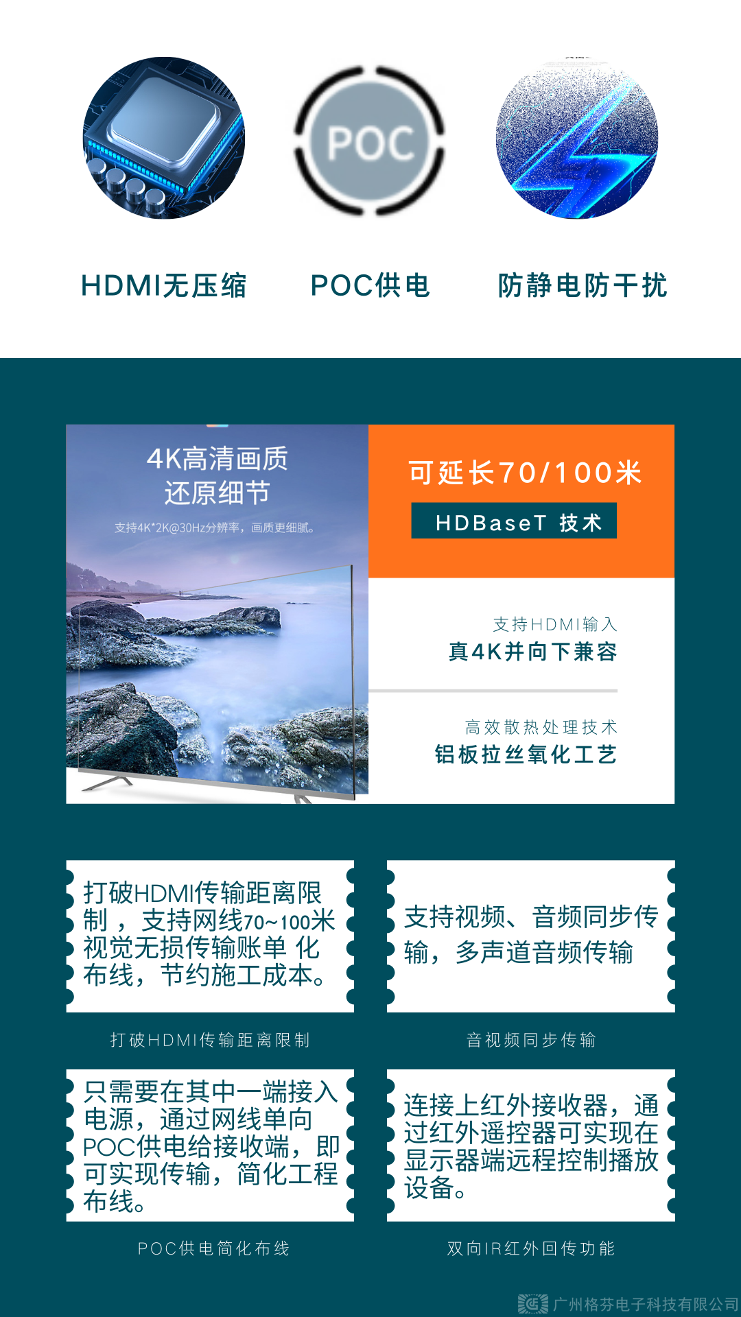 ●采用HDBaseT传输技术,实现HDMI图像信号无压缩、无延时传输。