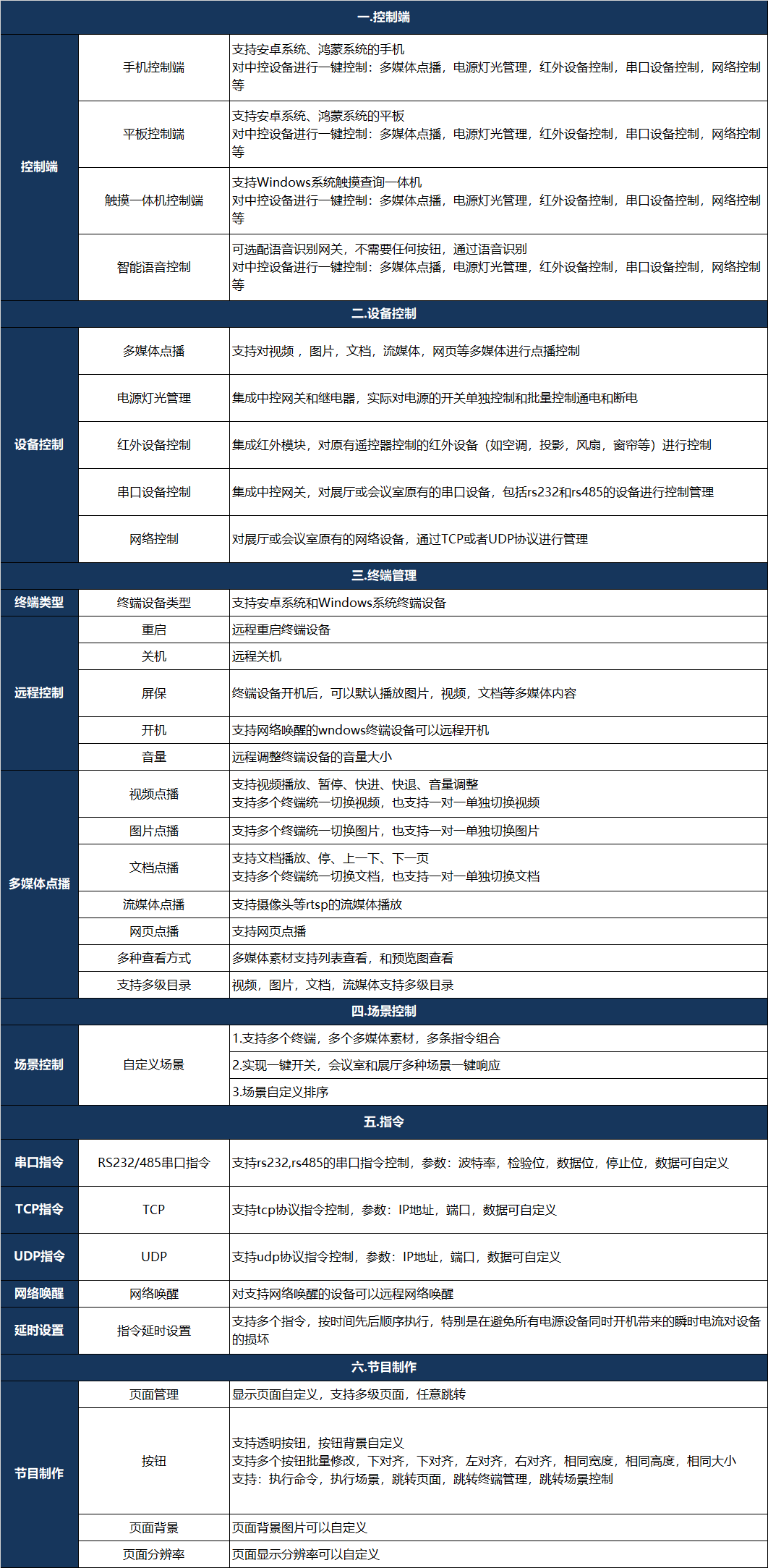 ●支持串口或网络控制,实现RS232或TCP/UDP控制功能;