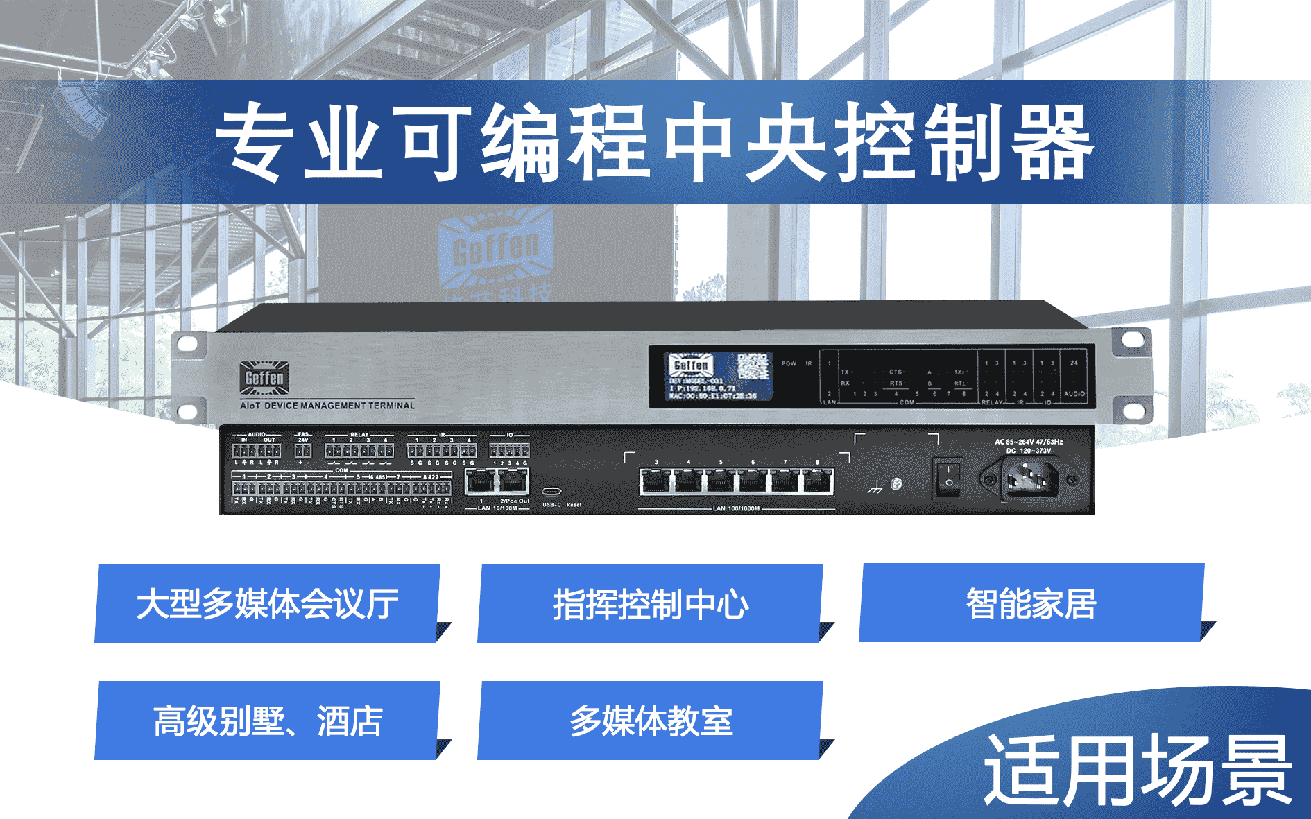 可编程中控系统GF-MAXCC采用分布式架构设计,核心由中央控制主机、信号输入设备、执行终端及软件平台四部分组成,各模块通过有线与无线结合的方式实现协同工作。