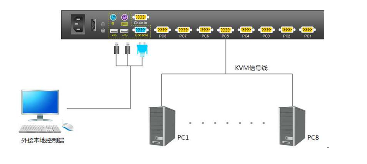 单组控制端管理16台服务器可级连多台设备,最多可管理512台计算机