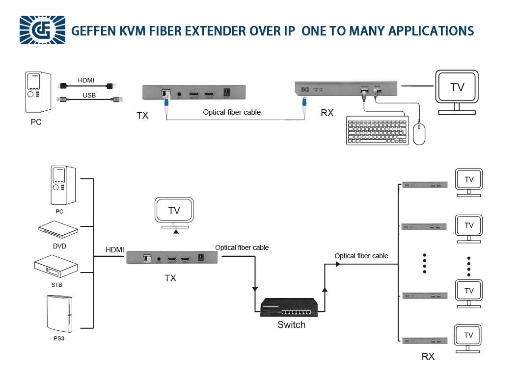 * It supports one-to-one or one to many transmission mode and can pass through fiber