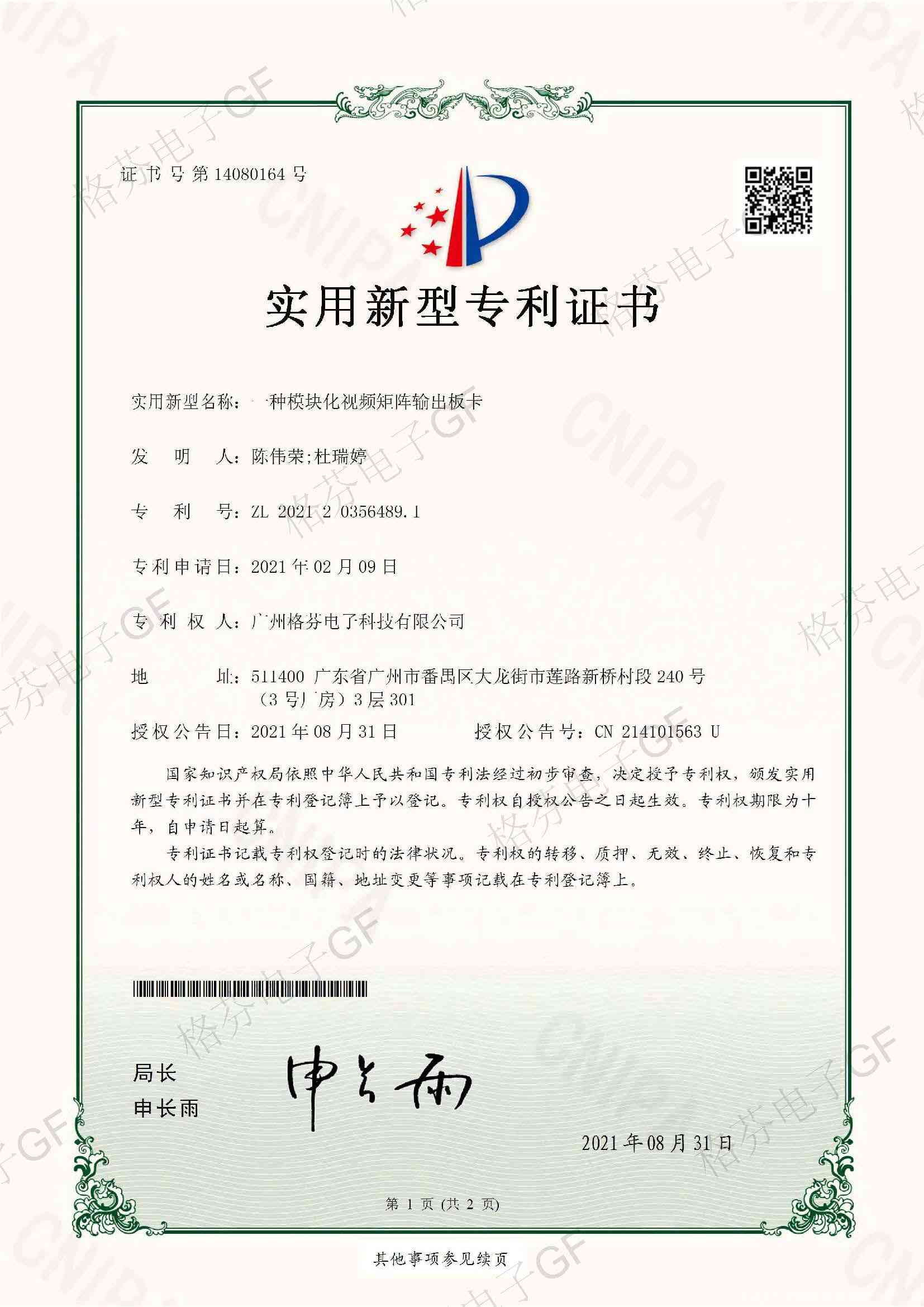 专利证书