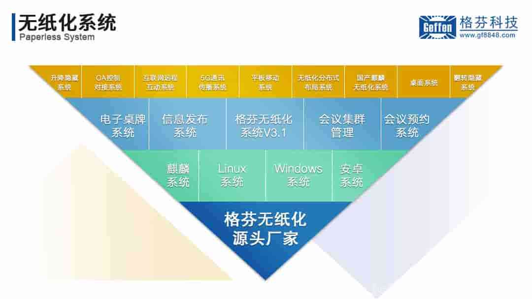 选择一个专业靠谱的无纸化会议设备厂家,能为会议室带来高工作效率、可控的会议环境。如果您也想配置无纸化会议设备,欢迎浏览GEFFEN格芬科技官网(www.gf8848.cn)或拨打020-34702140了解详情。