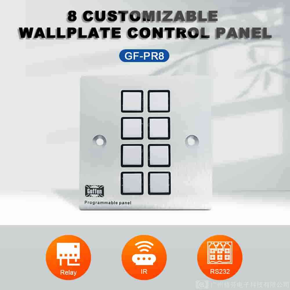 GF-PR8是一款功能强大、高度可编程的中控按键面板,广泛应用于会议室、多媒体教室、展览馆等多种需要集中控制和管理的场合。以下是对GF-PR8产品的详细介绍: