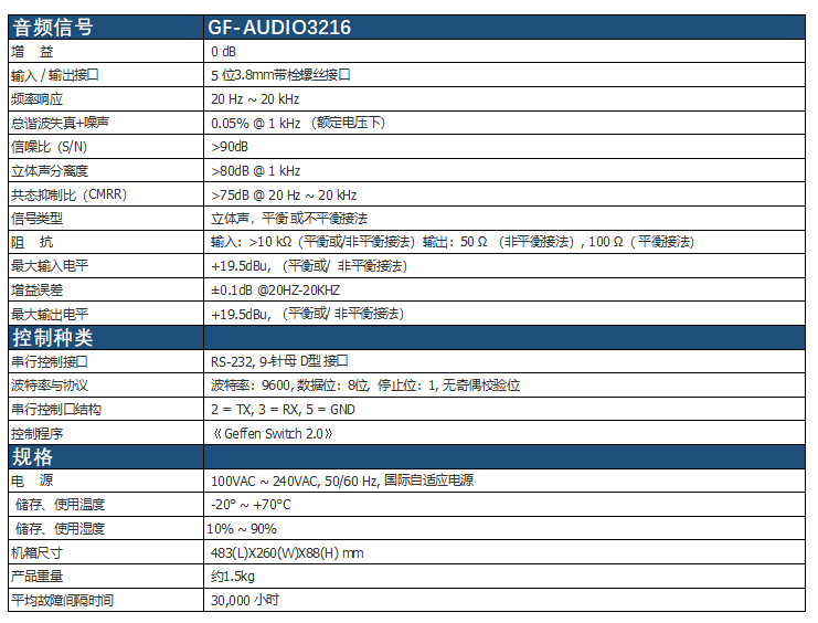 ●GF-AUDIO3216 32路音频输入,16路音频输出,可完全交叉切换
