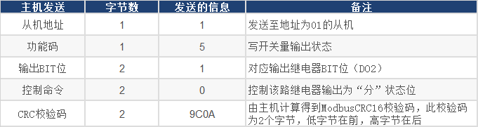 例1:开关量输出点DO1,其当前状态为“分”,主机要控制该路继电器“合”。