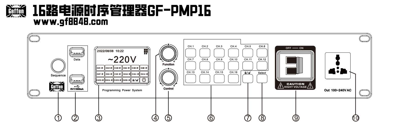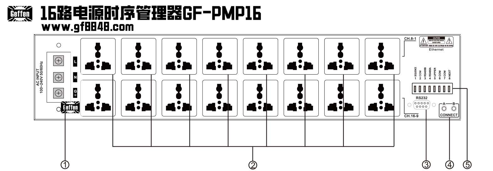 2.通道1~16万用电源插座;